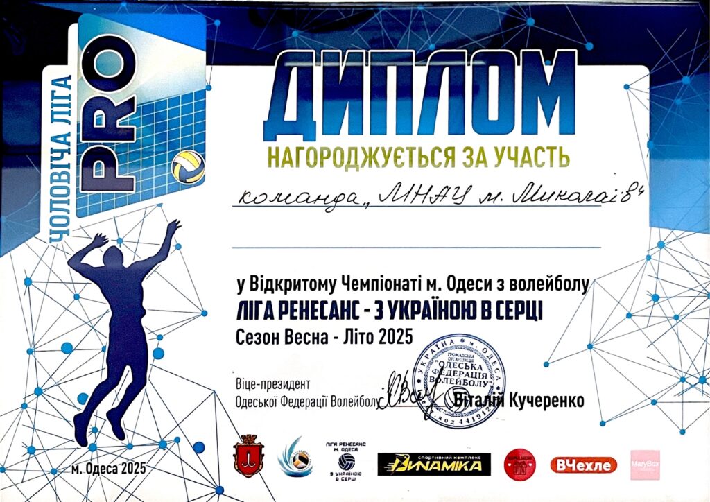 Здобувач вищої освіти спеціальності «Комп’ютерні науки» Конопляніков Ілля продемонстрував високий рівень спортивної майстерності у складі волейбольної команди МНАУ, беручи участь у Відкритому чемпіонаті міста Одеси з волейболу «Ліга Ренесанс – з Україною в серці» Вищої (Pro) ліги сезону весна-літо 2025 року.
