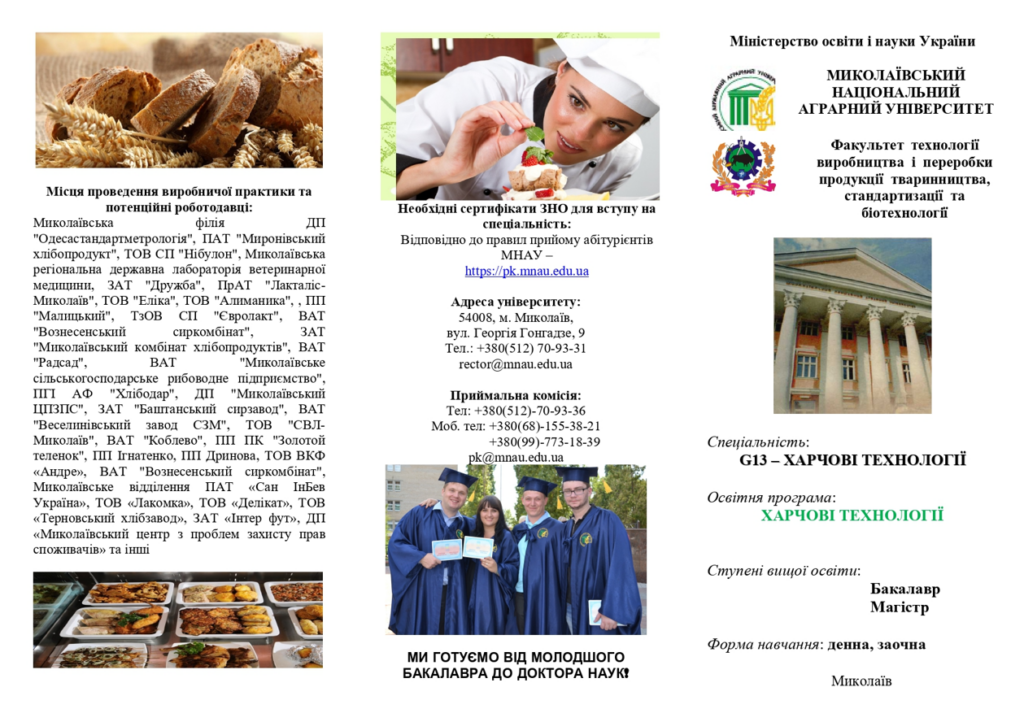 - Науково-дослідна лабораторія технологій хліба, макаронних, кондитерських виробів та харчоконцентратів;