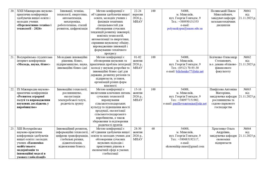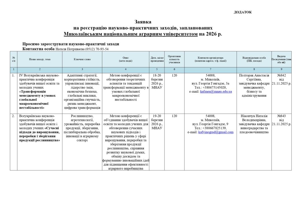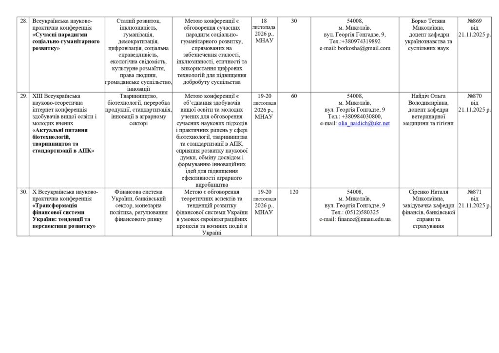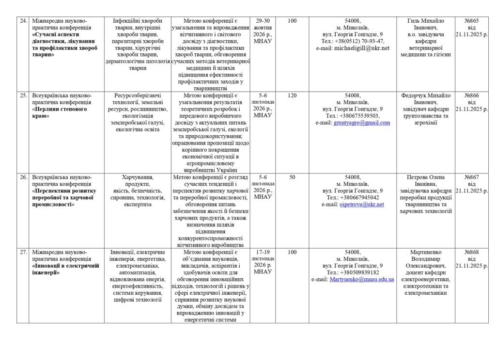 Науково-практичні заходи Миколаївського національного аграрного університету на 2025 р.